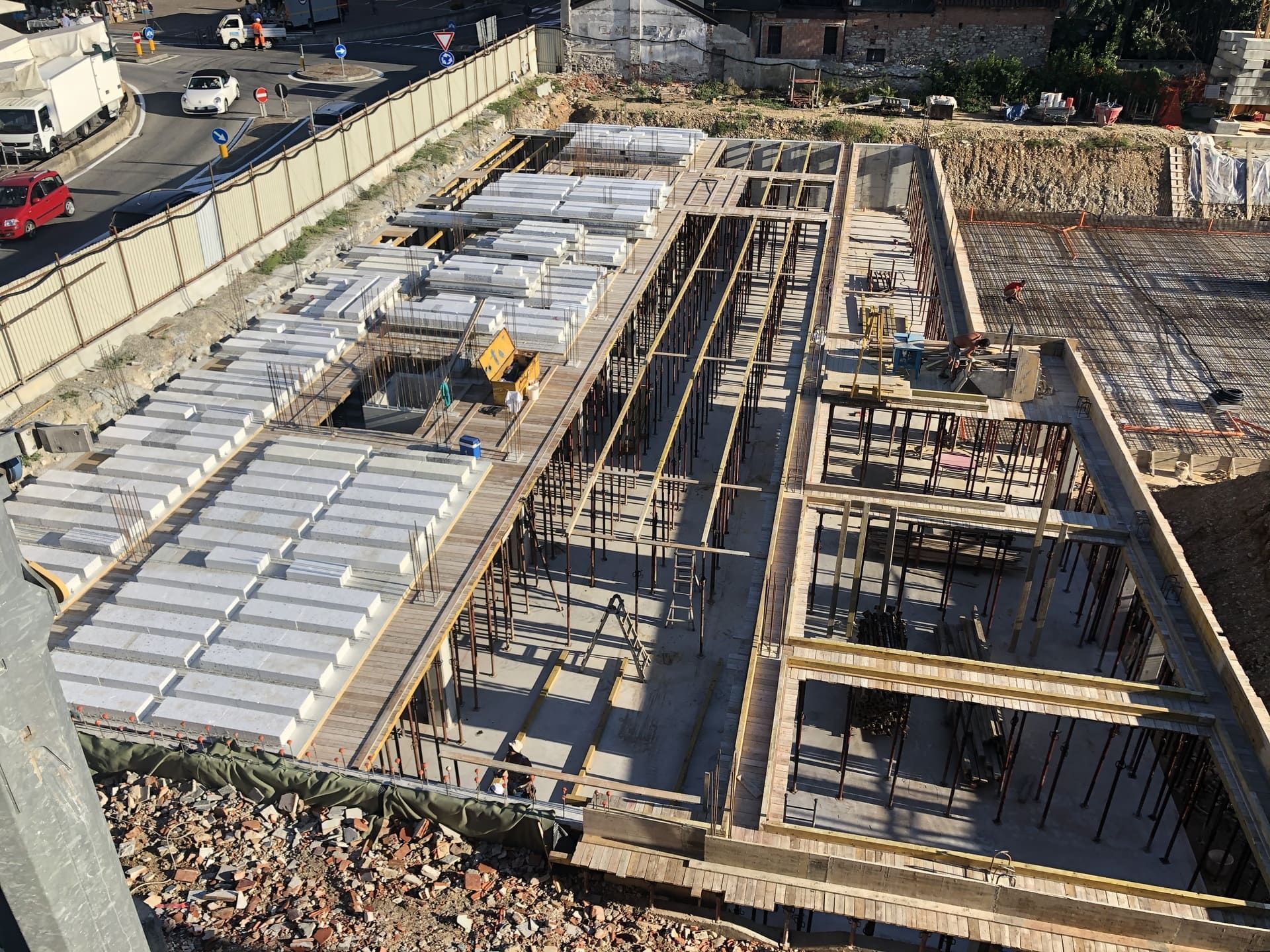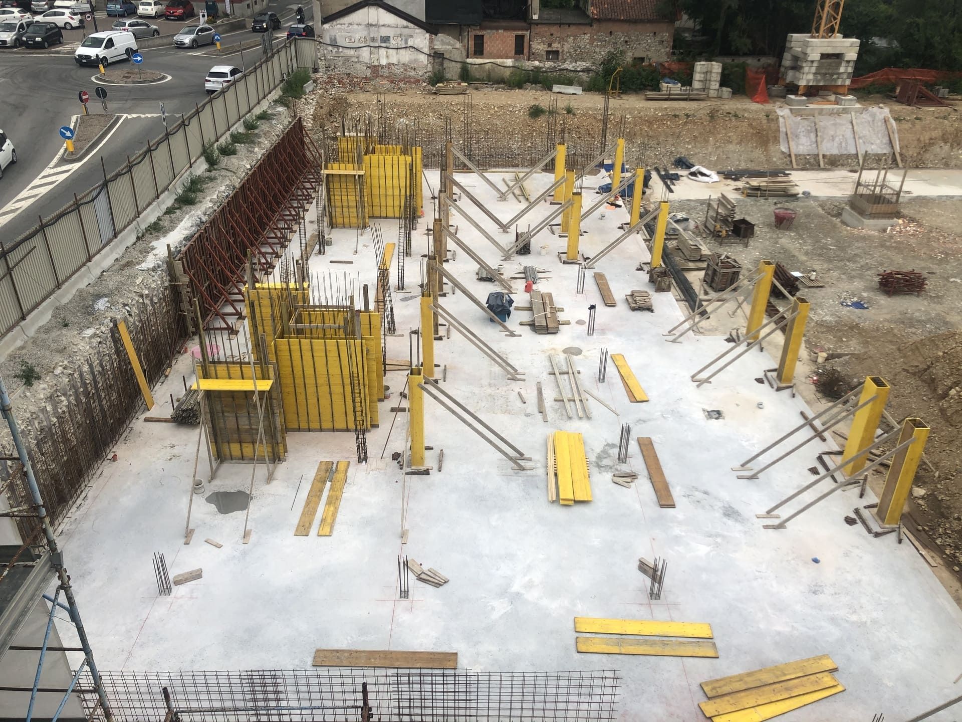 Il cantiere di Spada Reale, situato nel centro di Busca, ha visto la realizzazione di una struttura complessa caratterizzata da un importante lavoro di carpenteria in cemento armato, che costituisce l’ossatura principale dell’edificio. L’intervento ha richiesto un attenta precisione nella posa delle armature e nella fase di getto dei solai e dei pilastri, garantendo un risultato solido e duraturo.