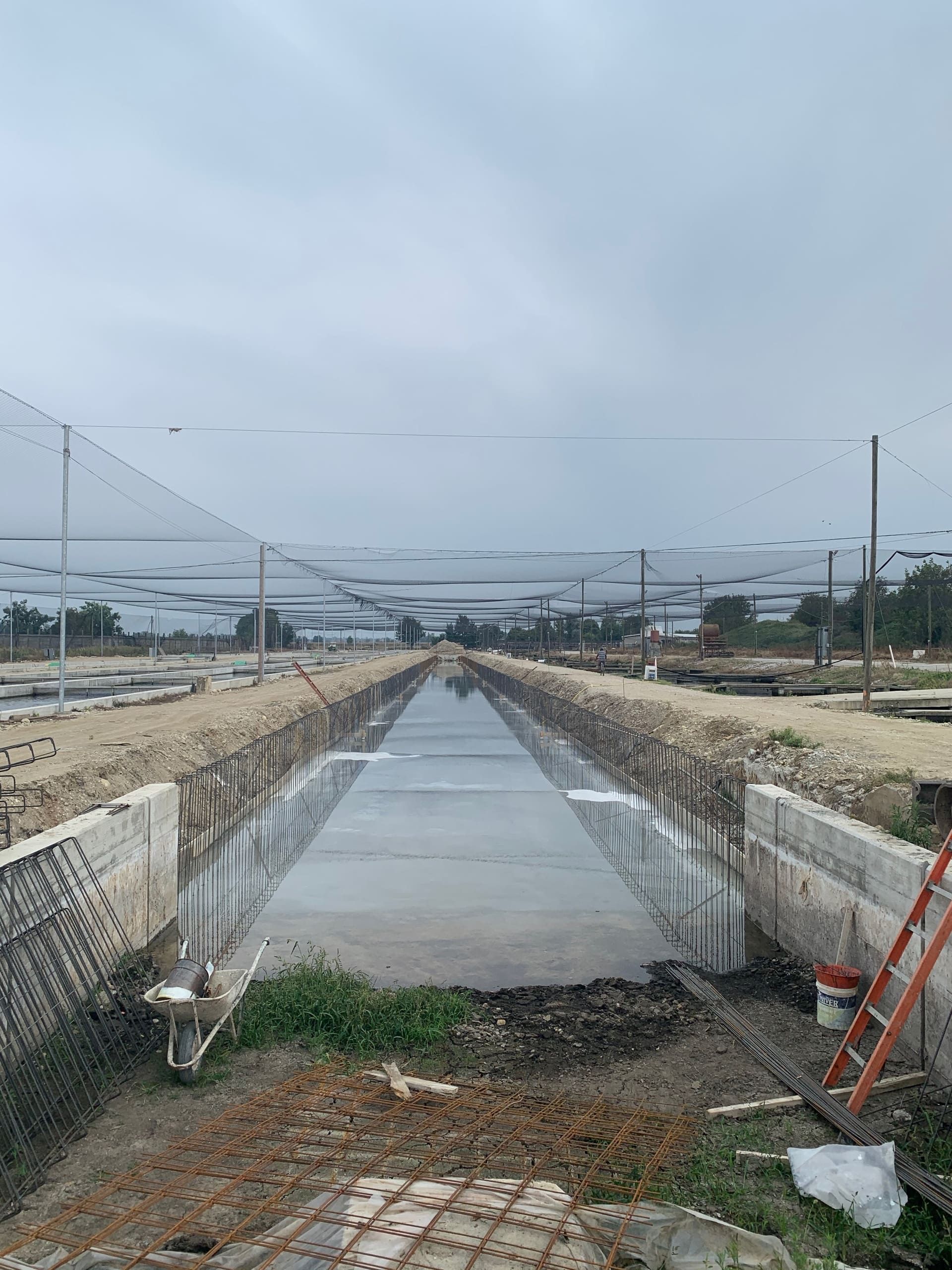 Questo intervento ha riguardato la costruzione di vasche in cemento armato destinate all'allevamento professionale di trote. La specificità di un progetto di acquacoltura richiede la massima durabilità e tenuta stagna. Per questo motivo, la realizzazione strutturale è stata eseguita interamente in calcestruzzo armato per assicurare fondi e pareti completamente a prova di infiltrazione, essenziali per il successo operativo dell'impianto.