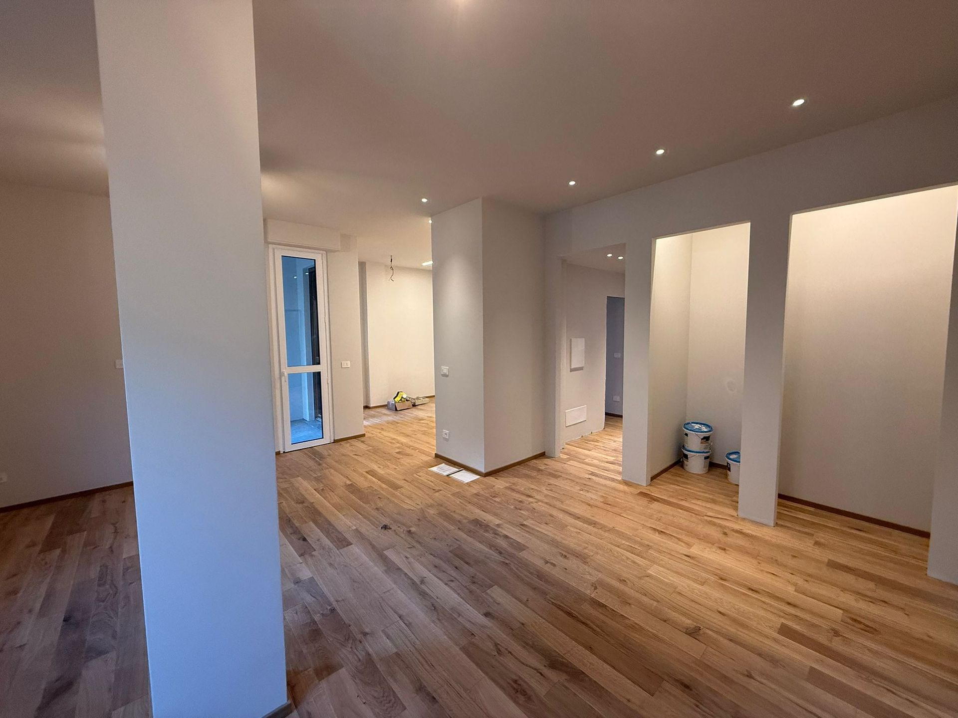 - Inserimento di porte scorrevoli a scomparsa per recuperare superficie utile